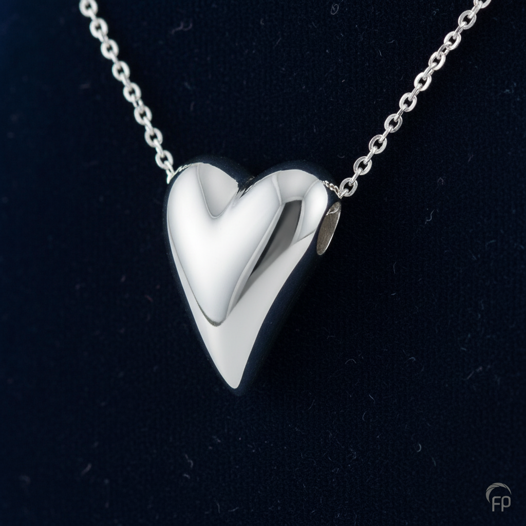 Deze prachtige zilveren ashanger in hartvorm is meer dan alleen een sieraad. Het is een tasbare herinnering aan iemand die voor altijd een speciaal plekje in je hart heeft.