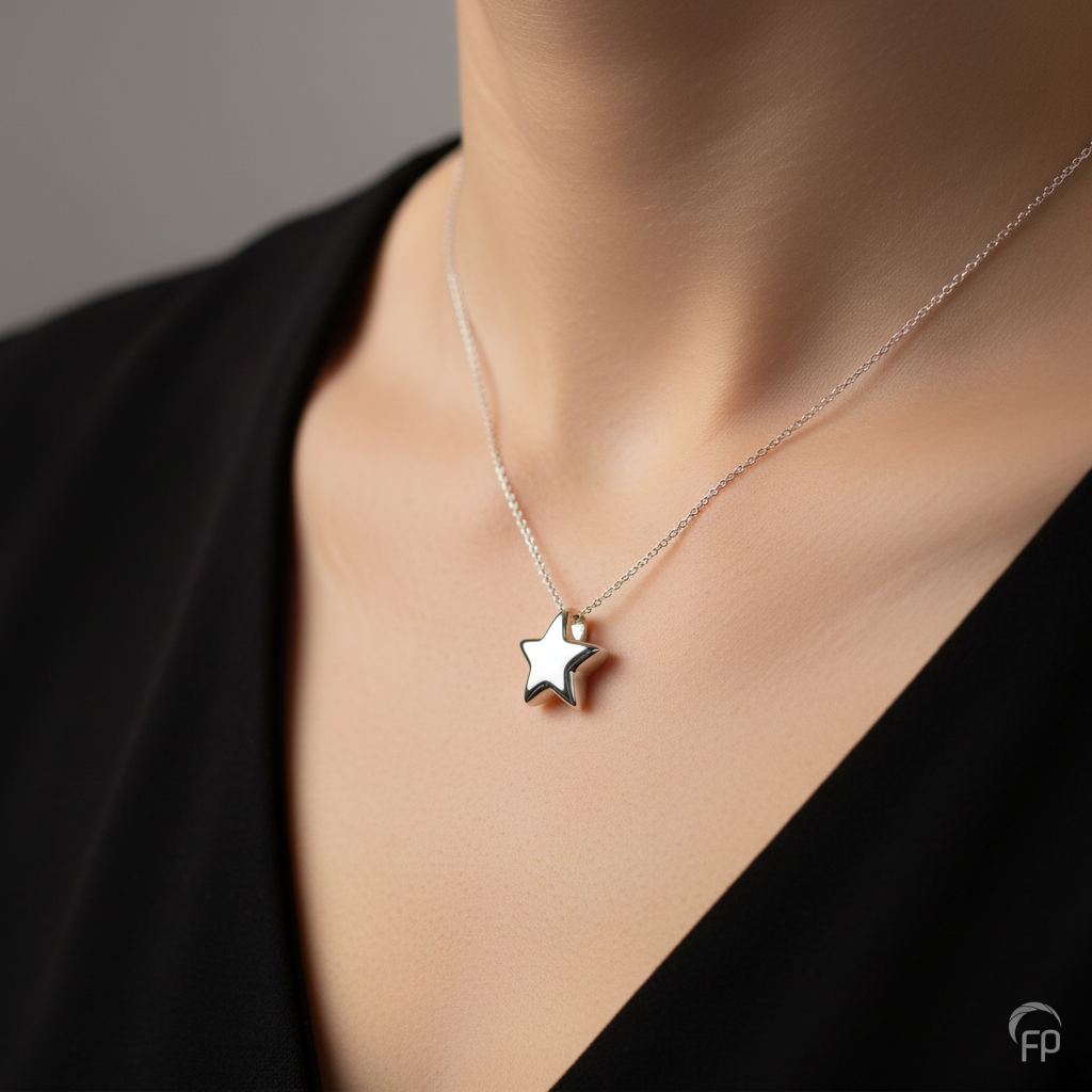 Deze prachtige zilveren ashanger in de vorm van een ster biedt u een liefdevolle manier om uw overleden dierbare altijd dicht bij uw hart te dragen. Een symbool van licht en eeuwigheid dat troost en verbinding schenkt.